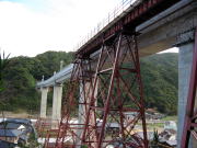 それによると餘部鉄橋は明治42年工事に着工し完成までに33万円(現42億円)を超える資金と延べ25万人の人員が投入され、トレッスル橋としては国内最大の鉄道建築として明治45(1912年)に完成した。米田茶店の先代、米田弥右衛門はこの地の鉄道敷設に尽力しその功績により浜坂駅に関する仕事の権利を取得。当時の人は『全長309.4m、橋脚の高さ41.5mの餘部鉄橋に新しい日本を夢見、それはまた明治の浪漫だった。そして米田弥右衛門もそのうちの一人だった。』と一文は結んでいる。あれから98年、幾多のドラマを繰り広げながら「餘部鉄橋」は2010年8月、2代目のコンクリート橋「餘部橋梁」へと変身した。